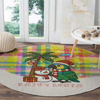 Saint Lucia Christmas Round Carpet with Parrot Palm Tree Snowman and Plaid Holiday TS04