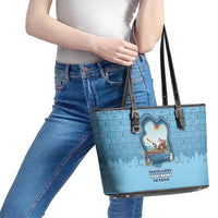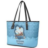 Santa Claus Is Kayaking To Town Leather Tote Bag Merry Christmas