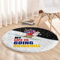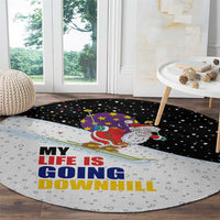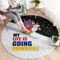 Santa Claus Ski My Life Is Going Downhill Christmas Round Carpet Xmas Holiday Patterns