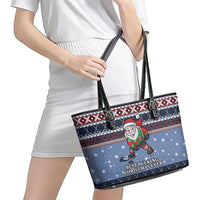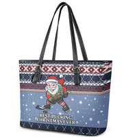 Santa Hockey Best Pucking Christmas Leather Tote Bag