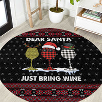 Santa Just Bring Wine Christmas Round Carpet Xmas Holiday Patterns
