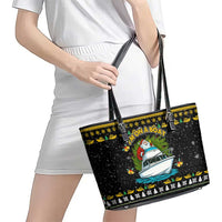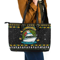 Santa On A Boat Christmas Leather Tote Bag Xmas Holiday Patterns TS04
