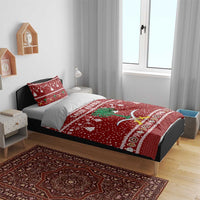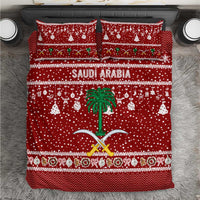 Saudi Arabia Christmas Bedding Set with Red Festive Pattern, National Emblem with Palm and Swords, and Map Motif