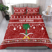 Saudi Arabia Christmas Bedding Set with Red Festive Pattern, National Emblem with Palm and Swords, and Map Motif TS04