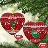 Saudi Arabia Christmas Ceramic Ornament with Red Festive Pattern, National Emblem with Palm and Swords, and Map Motif