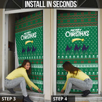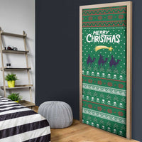 Saudi Arabia Christmas Door Cover with Green Pattern, Traditional Script Motif, and Camel Caravan Silhouette TS04