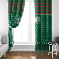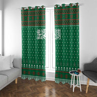 Saudi Arabia Christmas Window Curtain with Green Pattern, Traditional Script Motif, and Camel Caravan Silhouette TS04