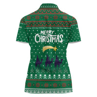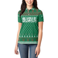 Saudi Arabia Christmas Women Polo Shirt with Green Pattern, Traditional Script Motif, and Camel Caravan Silhouette TS04