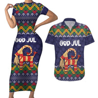 Scandinavian Yule Goat Christmas Couples Matching Short Sleeve Bodycon Dress and Hawaiian Shirt with Scandinavian Folk Pattern Style