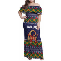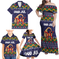 Scandinavian Yule Goat Christmas Family Matching Off Shoulder Maxi Dress and Hawaiian Shirt with Scandinavian Folk Pattern Style