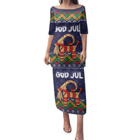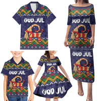 Scandinavian Yule Goat Christmas Family Matching Puletasi and Hawaiian Shirt with Scandinavian Folk Pattern Style