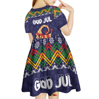 Scandinavian Yule Goat Christmas Kid Short Sleeve Dress with Scandinavian Folk Pattern Style