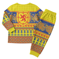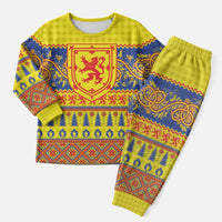 Scottish Christmas Pajama Set Scotland Thistle and Celtic Knot Yellow-Red Color