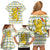 Senegal Christmas Family Matching Off Shoulder Short Dress and Hawaiian Shirt with White-Green-Yellow Design, Golden Lion, and Festive Stars Motif TS04