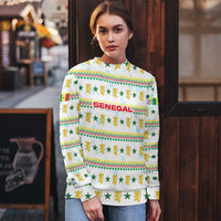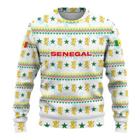 Senegal Christmas Ugly Christmas Sweater with White-Green-Yellow Design, Golden Lion, and Festive Stars Motif TS04