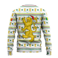 Senegal Christmas Ugly Christmas Sweater with White-Green-Yellow Design, Golden Lion, and Festive Stars Motif