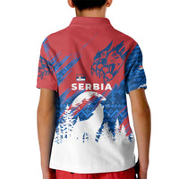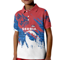 Serbia Christmas Kid Polo Shirt with Wolf Howling Moon Serbian Flag and Red Blue White Winter Forest Pattern Design TS04