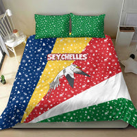 Seychelles Christmas Bedding Set with Flag Colors Pattern, Tropical Bird Motif, and National Coat of Arms TS04
