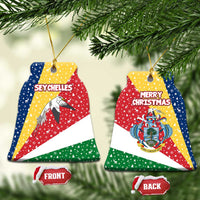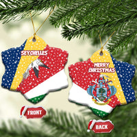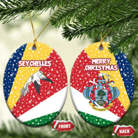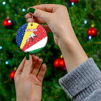 Seychelles Christmas Ceramic Ornament with Flag Colors Pattern, Tropical Bird Motif, and National Coat of Arms
