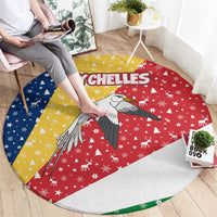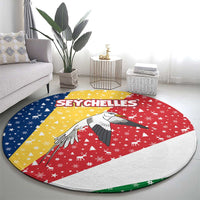 Seychelles Christmas Round Carpet with Flag Colors Pattern, Tropical Bird Motif, and National Coat of Arms TS04