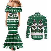 Sheep Baaa Humbug Christmas Couples Matching Mermaid Dress and Long Sleeve Button Shirt Xmas Holiday Patterns