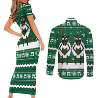 Sheep Baaa Humbug Christmas Couples Matching Short Sleeve Bodycon Dress and Long Sleeve Button Shirt Xmas Holiday Patterns