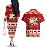 Sheep Merry Christmas Couples Matching Off The Shoulder Long Sleeve Dress and Hawaiian Shirt Xmas Holiday Patterns TS04