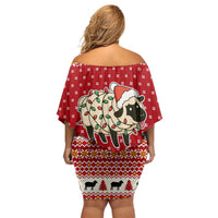 Sheep Merry Christmas Off Shoulder Short Dress Xmas Holiday Patterns