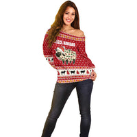 Sheep Merry Christmas Off Shoulder Sweater Xmas Holiday Patterns