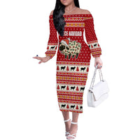 Sheep Merry Christmas Off The Shoulder Long Sleeve Dress Xmas Holiday Patterns TS04