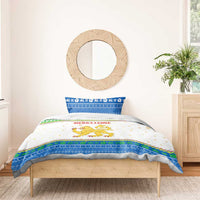 Sierra Leone Christmas Bedding Set with Festive Green Pattern, Golden Lion Emblem, and Santa Sleigh Motif TS04