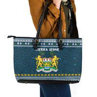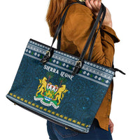 Sierra Leone Christmas Leather Tote Bag with Ornamental Pattern, National Coat of Arms, and Festive Motif