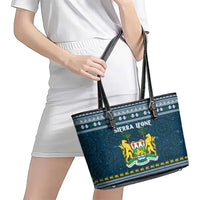 Sierra Leone Christmas Leather Tote Bag with Ornamental Pattern, National Coat of Arms, and Festive Motif TS04