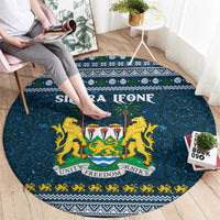 Sierra Leone Christmas Round Carpet with Ornamental Pattern, National Coat of Arms, and Festive Motif