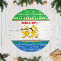 The Sierra Leone Christmas Tree Skirt with Festive Green Pattern, Golden Lion Emblem, and Santa Sleigh Motif by Wonder Print Shop is the perfect finishing touch for your Christmas tree. With vibrant seasonal designs and practical features, this custom skirt keeps your space looking neat while adding cozy charm to your décor. Whether you're hosting holiday gatherings or simply creating a joyful winter setting, this skirt makes your tree shine even brighter.