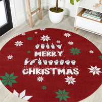 Sign Language Merry Christmas Round Carpet Xmas Holiday Patterns