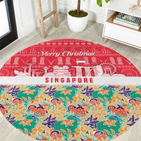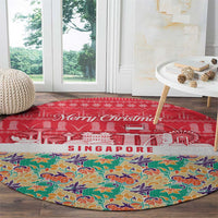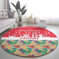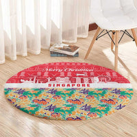 Singapore Christmas Round Carpet with Skyline Batik Patterns Landmark Silhouettes and Festive Design