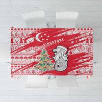 Singapore Christmas Tablecloth with Merlion Santa Hat Batik Christmas Tree and City Skyline Design
