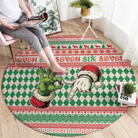 Six Seven Meme Round Carpet Funny Green Hand Christmas