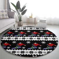 Skiing Snowflake Christmas Round Carpet Xmas Holiday Patterns