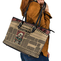 Skull Christmas Leather Tote Bag Newspaper Retro Style