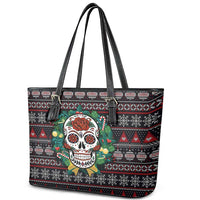Skull Christmas Leather Tote Bag Xmas Holiday Patterns