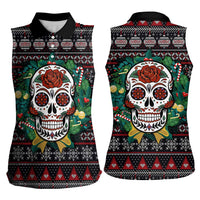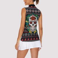Skull Christmas Women Sleeveless Polo Shirt Xmas Holiday Patterns