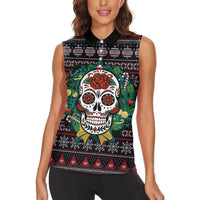 Skull Christmas Women Sleeveless Polo Shirt Xmas Holiday Patterns TS04