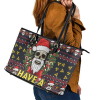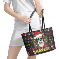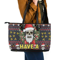 Skull Have A Rad Christmas Leather Tote Bag Santa Skull