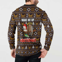 Sloth Wake Me Up Christmas Button Sweatshirt Xmas Holiday Patterns TS04