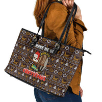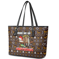 Sloth Wake Me Up Christmas Leather Tote Bag Xmas Holiday Patterns