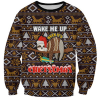 Sloth Wake Me Up Christmas Sweatshirt Xmas Holiday Patterns TS04