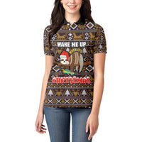 Sloth Wake Me Up Christmas Women Polo Shirt Xmas Holiday Patterns