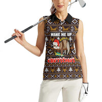 Sloth Wake Me Up Christmas Women Sleeveless Polo Shirt Xmas Holiday Patterns